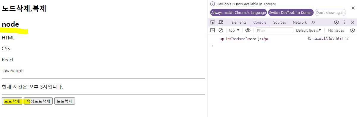 <p id="text">현재 시간은 오후 3시입니다.</p>