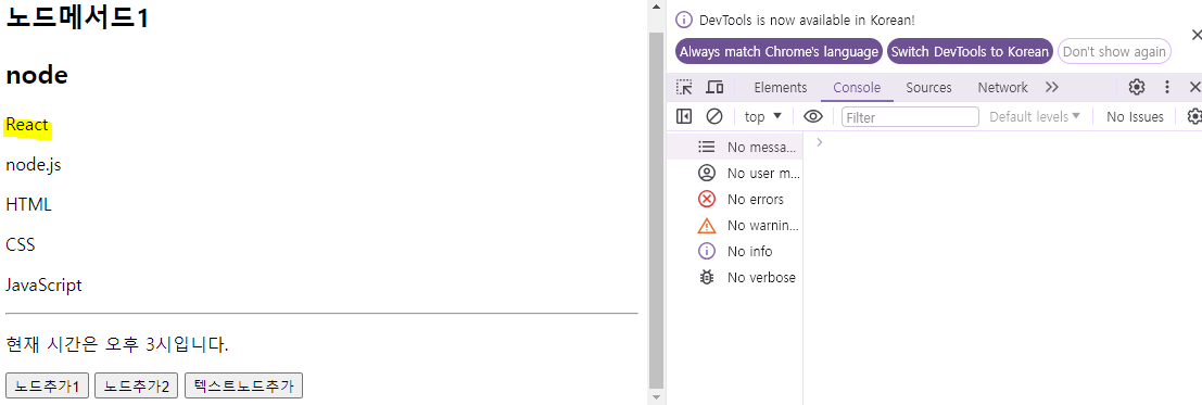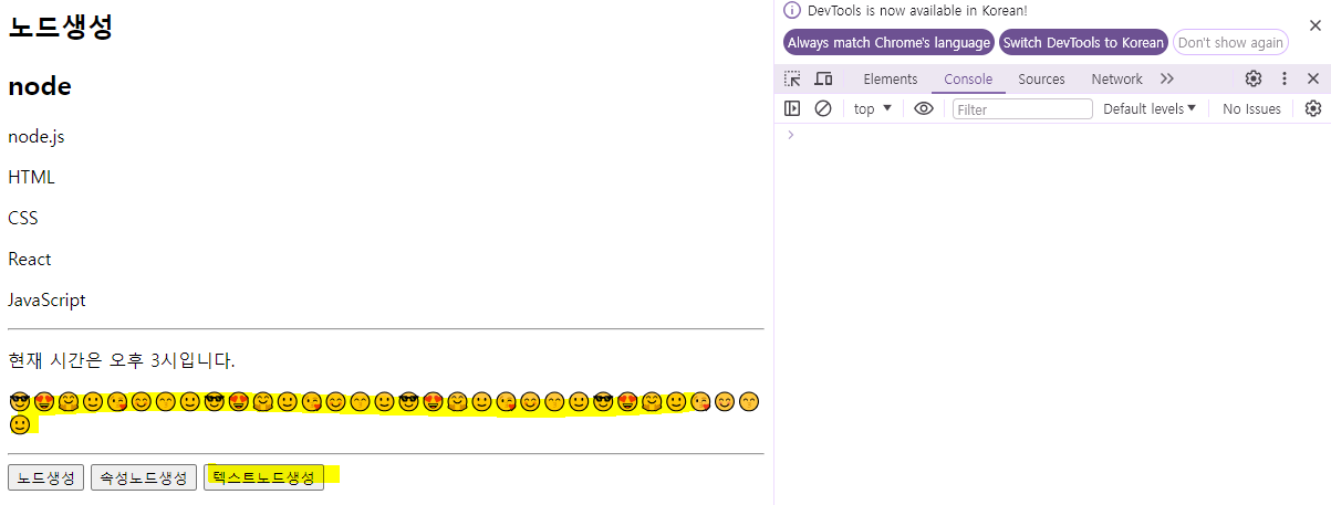 <!-- React style 속성 생성 --> <button onclick="createText()">텍스트노드생성</button>