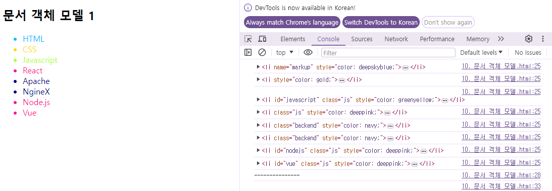 <h2> 문서 객체 모델 1 </h2> <ul>