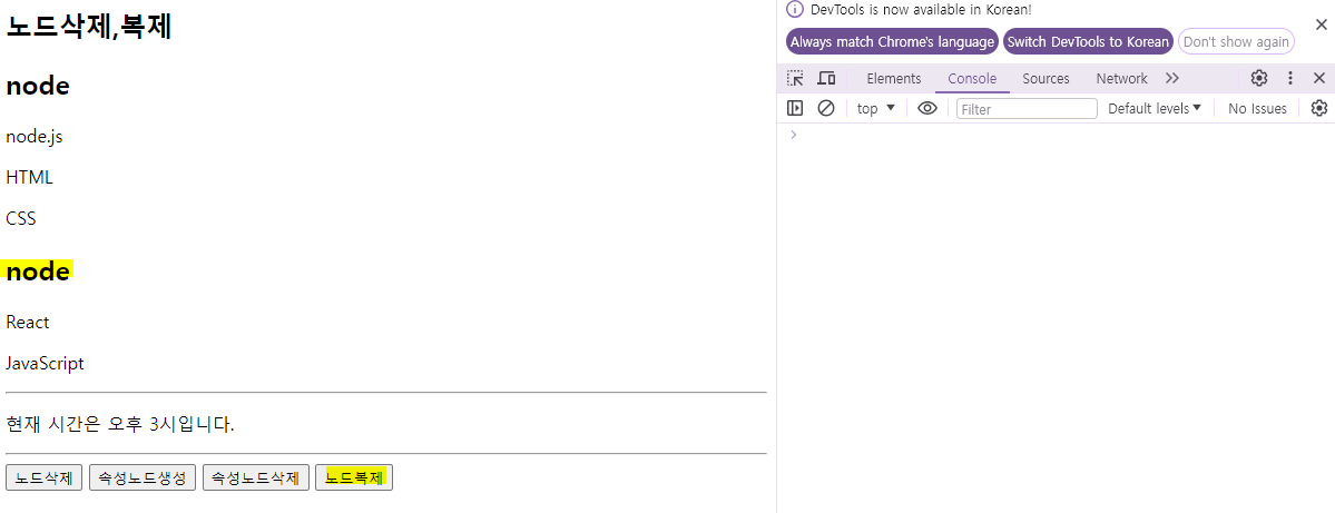 [ 노드생성 ] 한번 클릭 ![]() [ 노드생성 ] 두번 클릭 ![]() [ 속성노드생성 ] 클릭 ![]() [ 텍스트노드생성 ] 한번 클릭 ![]() [ 텍스트노드생성 ] 여러번 클릭 ![]() |