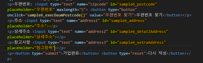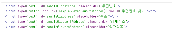 <p>상세주소 <input type="text" name="address2" id="address2"></p>