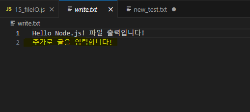 fs.appendFile('./write.txt','\r\n추가로 글을 입력합니다!')