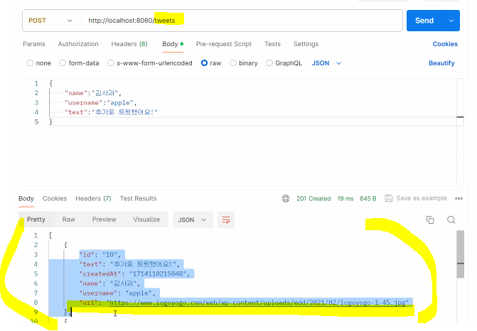 // "text":"트윗을 추가했어요555",