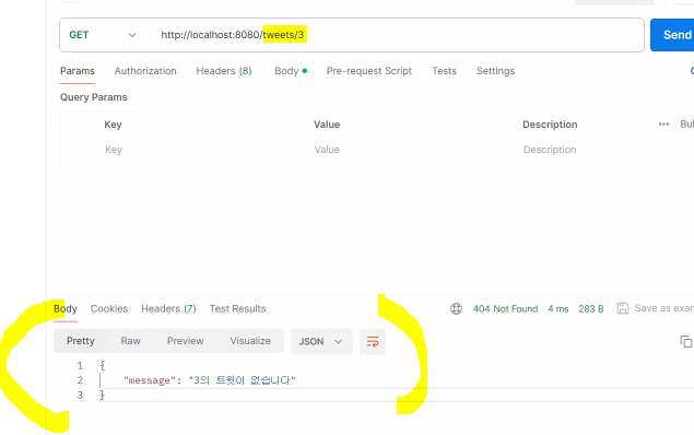 res.status(404).json({message: `${id}의 트윗이 없습니다`});