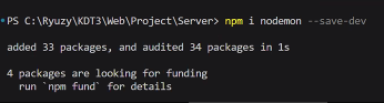 terminal 에서 npm i nodemon --save-dev 입력