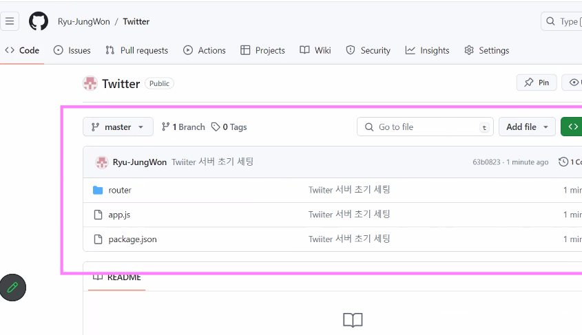 "main":"app.js"로 수정