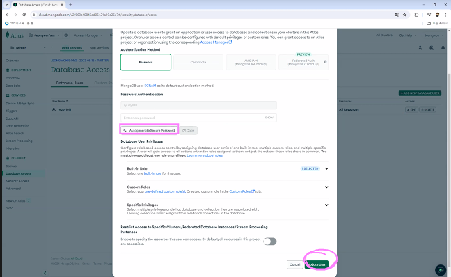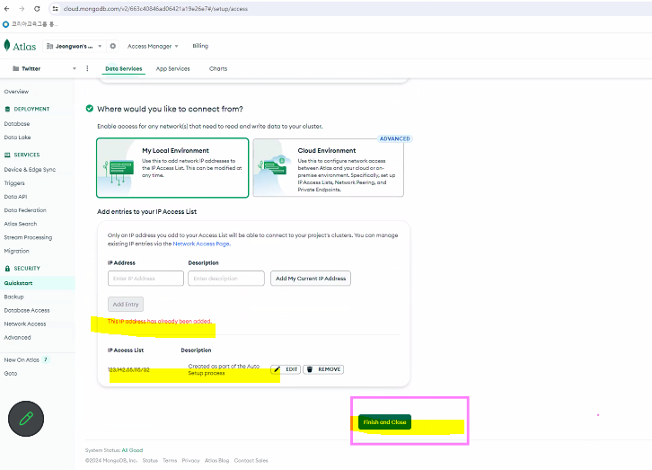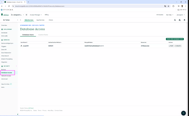 - MongoDB 확인 (회원가입한 데이터가 데이터베이스 안에 들어감)