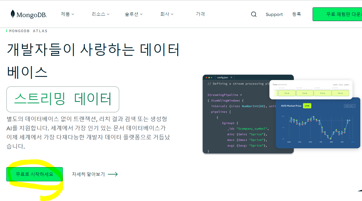 - 사이트: https://www.mongodb.com/ko-kr
