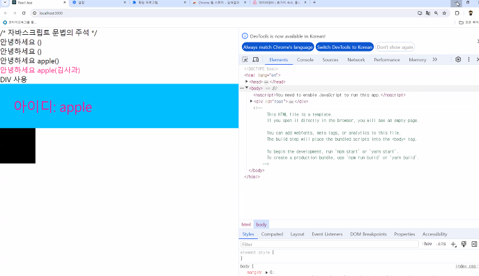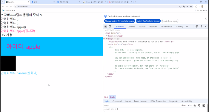 ‼ JSX에서 null, false, undefined 를 랜더링하면 화면에 아무것도 출력하지 않음