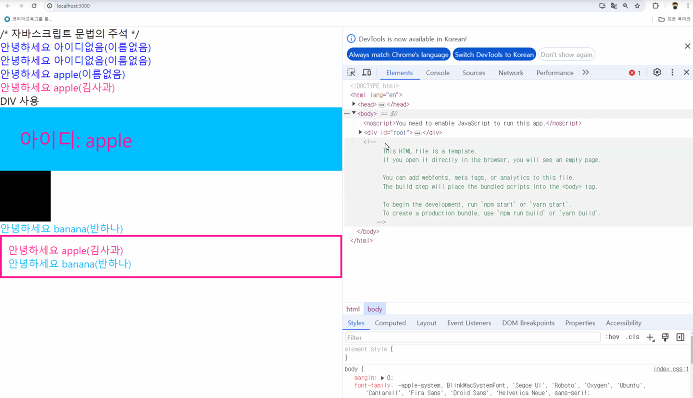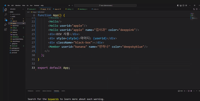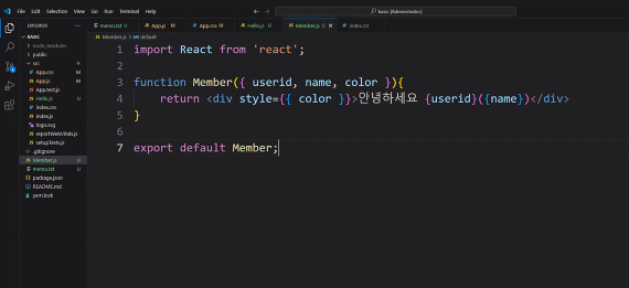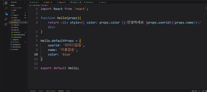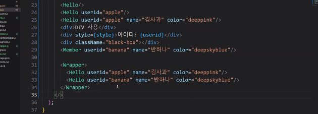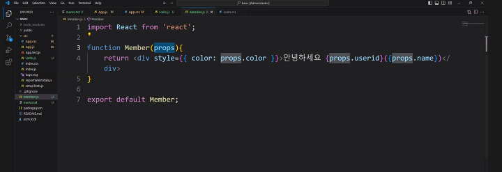 <Member userid="banana" name="반하나" color="deepskyblue"/> {/*추가*/}