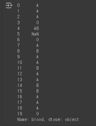 # 점 표기법을 사용하여 'blood' 열에 접근