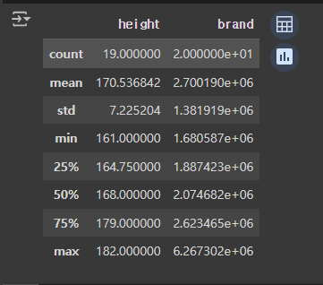 - describe(): 숫자형 데이터 통계 정보를 반환