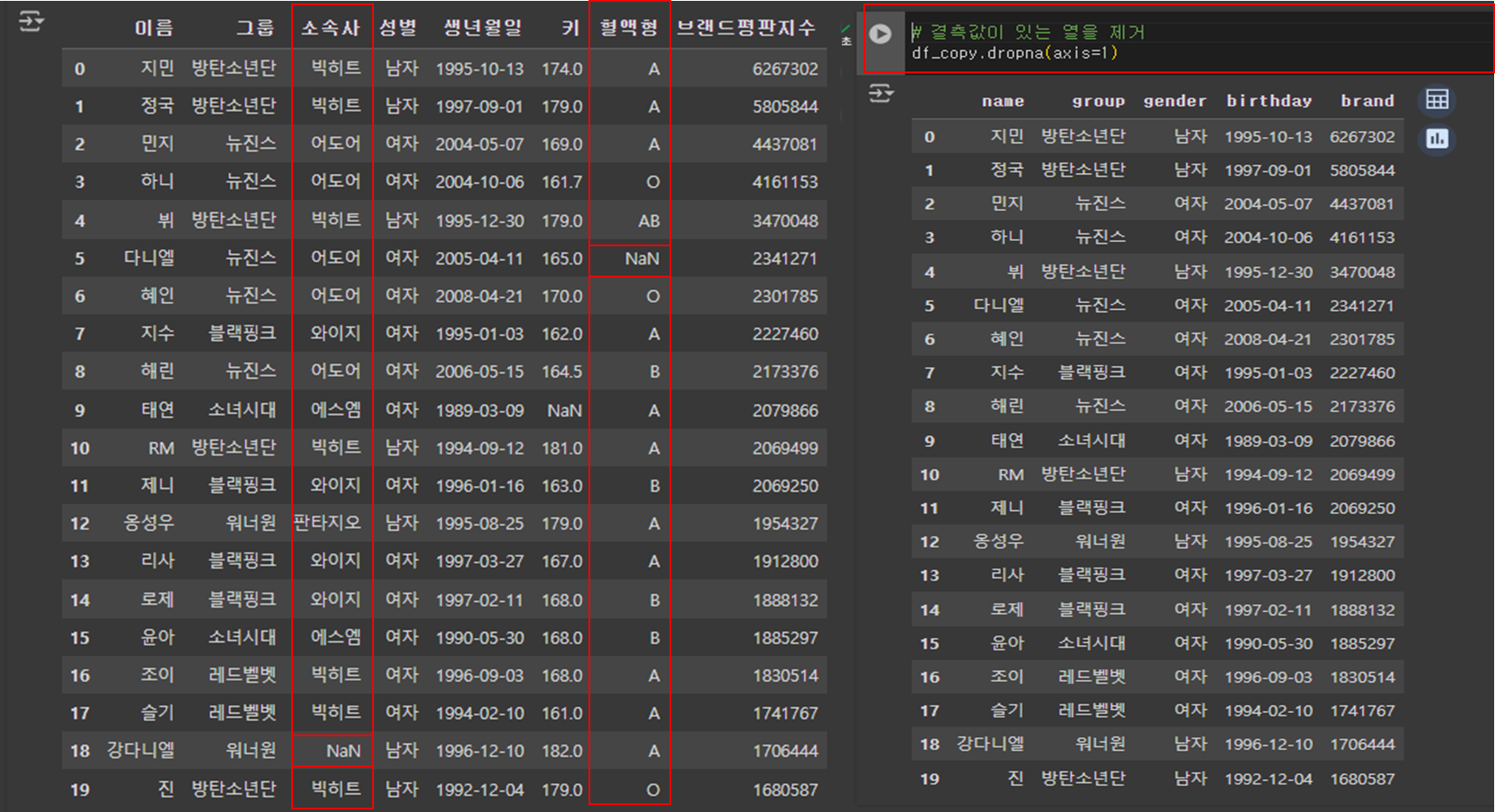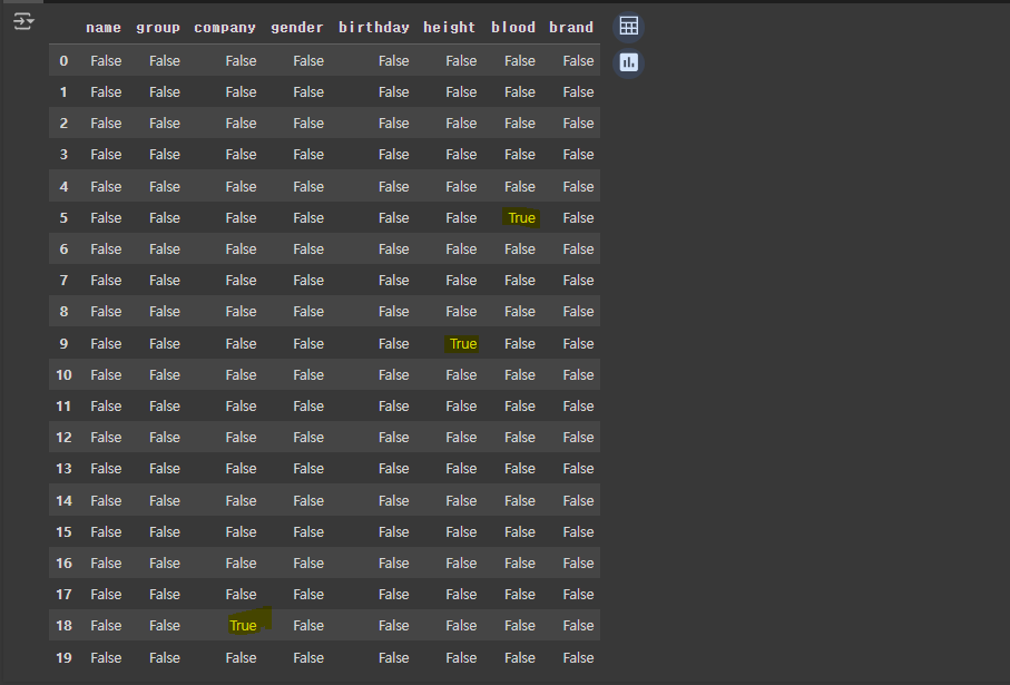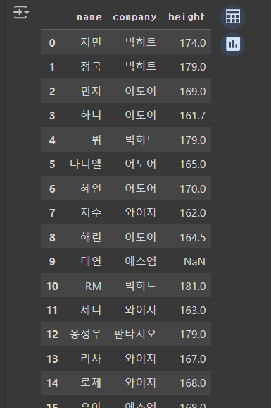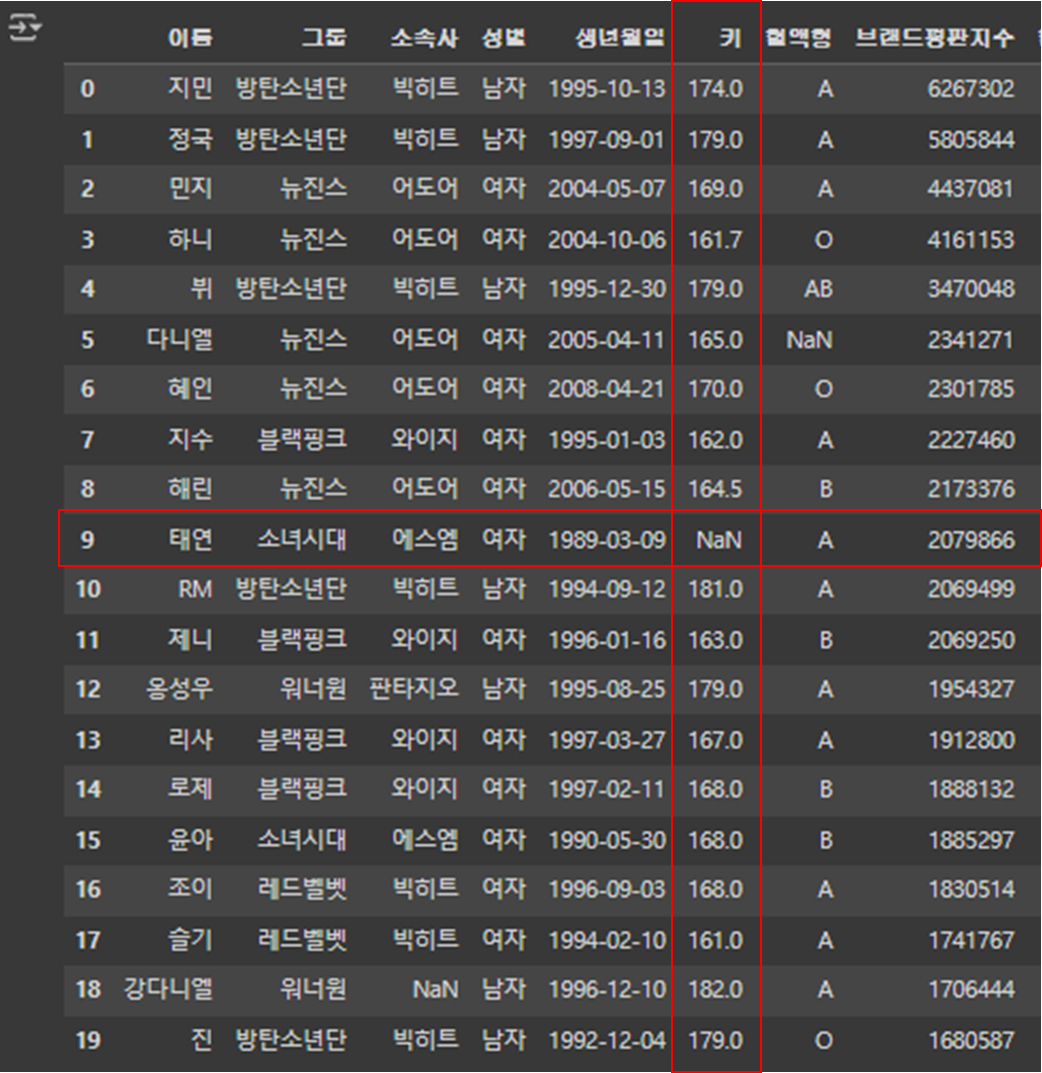 - '키'열에서 null 값인 행 찾기