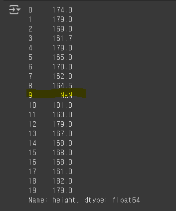 - pandas에서는 NaN(Not a Number)로 표기 된 것은 모두 결측값으로 취급