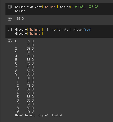 height = df_copy['height'].median() #50%값, 중위