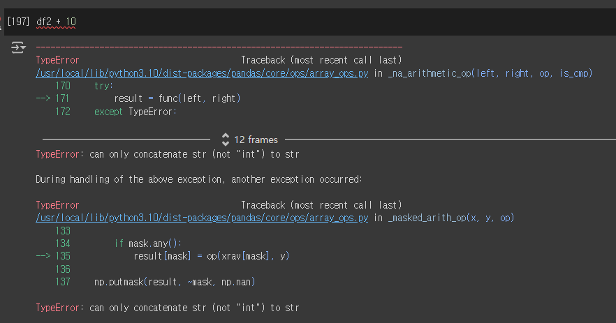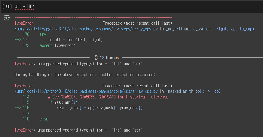 : 행의 개수가 다른 경우 빠진 데이터를 NaN으로 취급하기 문에 연산이 안됨