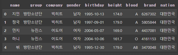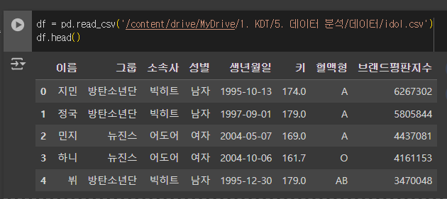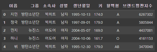 df = pd.read_csv('/content/drive/MyDrive/1. KDT/5. 데이터 분석/데이터/idol.csv')