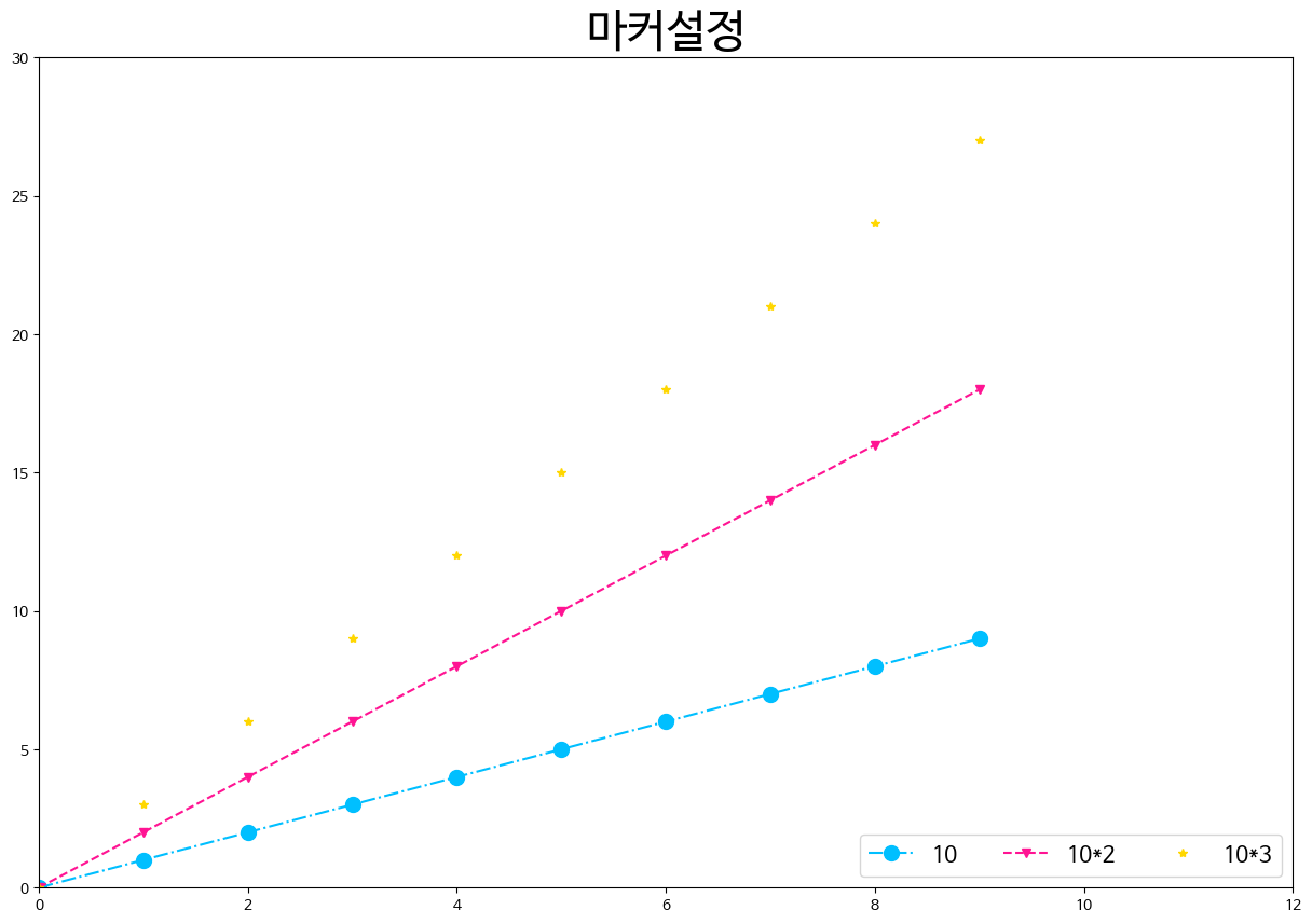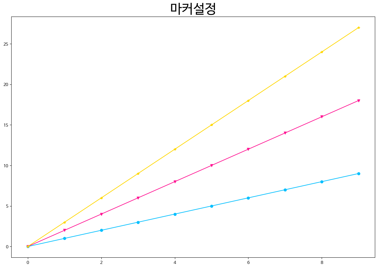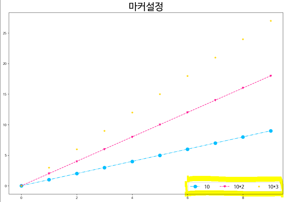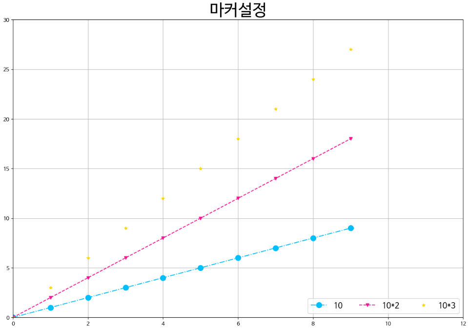 | @ 마커 스타일 marker = 'o' 동그라미 marker = 'v' 화살표 marker = '*' 별 |
