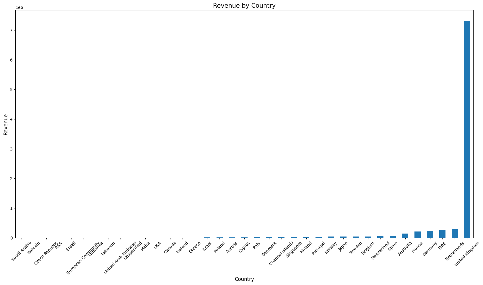 # 제목 : 'Revenue By Country' (글자 크기 : 15)
