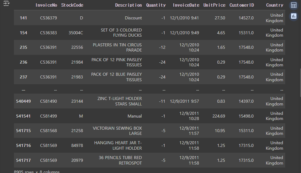 retail = pd.read_csv('/content/drive/MyDrive/1. KDT/5. 데이터 분석/데이터/OnlineRetail.csv')
