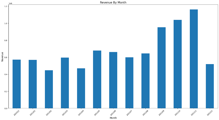 plot_bar(rev_by_month, 'Month','Revenue','Revenue By Month')