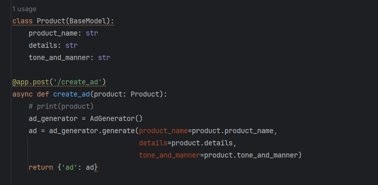 prompt = f'제품 이름: {product_name}\n주요 내용: {details}\n광고 문구의 스타일: {tone_and_manner} 위 내용을 참고하여 마케팅 문구를 만들어라'