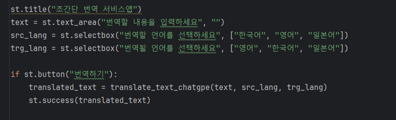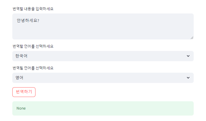 trg_lang = st.selectbox("번역될 언어를 선택하세요", ["영어", "한국어", "일본어"])