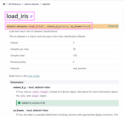 - load_iris 함수를 사용하여 아이리스 붓꽃 데이터셋을 로드한 후, 이를 iris 변수에 저장