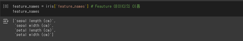 feature_names = iris['feature_names'] # Feauture 데이터의 이름