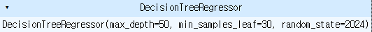 dfr = DecisionTreeRegressor(random_state=2024 , max_depth=50, min_samples_leaf=30)