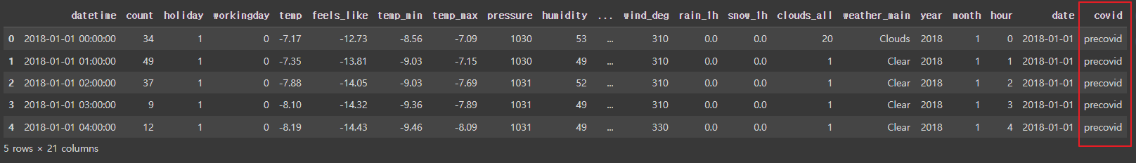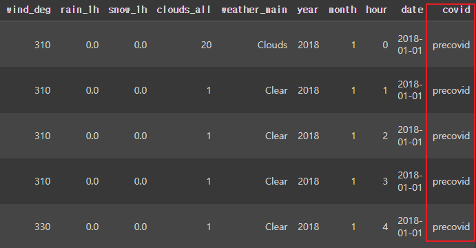 - 'covid'라는 새로운 열