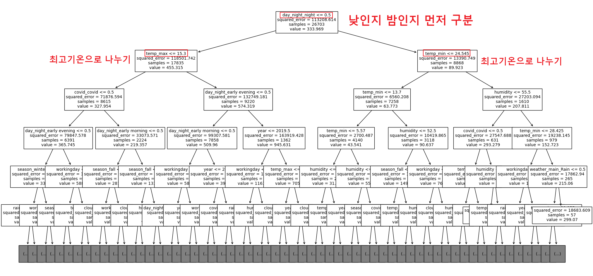 # 의사 결정 나무 RMSE: 210.74186203651976