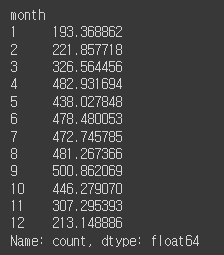- 2019년 월별 평균 자전거 대여 갯수를 출력