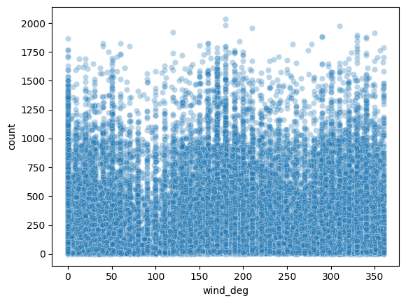 sns.scatterplot(x='wind_deg', y='count', data=bike_df, alpha=0.3)