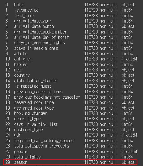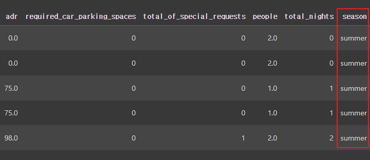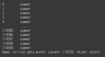 - arrival_date_month 열에 있는 월(month) 정보를 계절(season)로 변환하는 방법