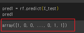 - 랜덤 포레스트 분류기(RandomForestClassifier)를 사용하여 모델을 학습하고 예측하는 과정