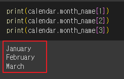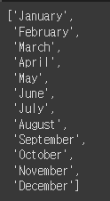- calendar 모듈을 사용하여 월(月)의 이름을 리스트에 저장