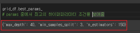 - params 중에서 최고의 하이퍼파라미터 조건 출력