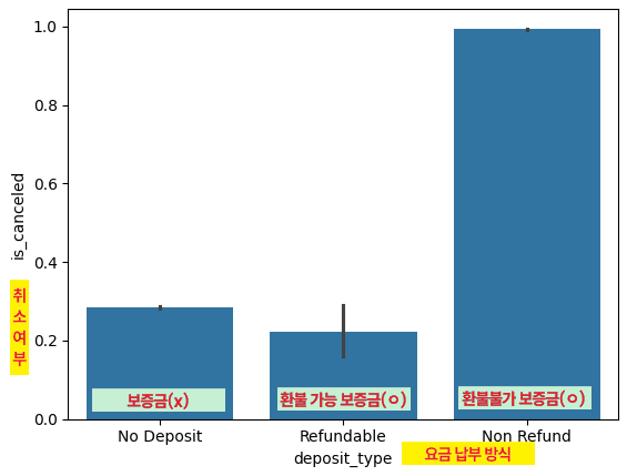 sns.barplot(x=hotel_df['deposit_type'], y=hotel_df['is_canceled'])