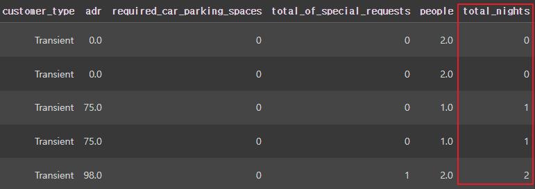 - [total_nights] 총 숙박일수 파생변수 만들기