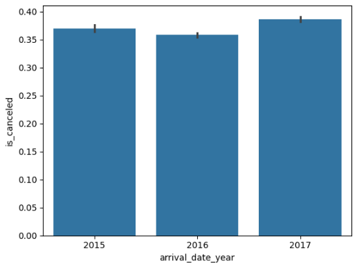sns.barplot(x=hotel_df['arrival_date_year'], y=hotel_df['is_canceled'])