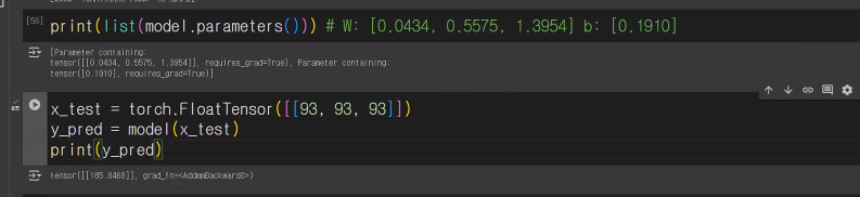 x_test = torch.FloatTensor([[93, 93, 93]])