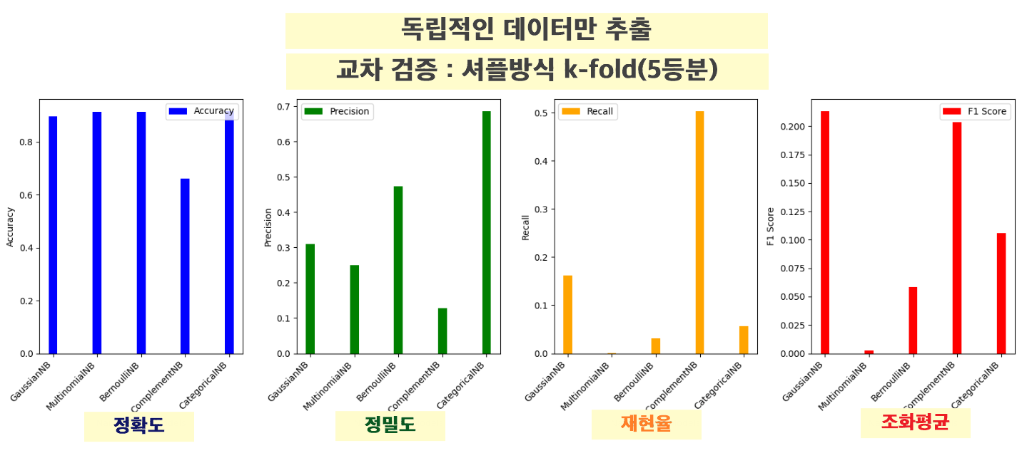 - Categorical Naive Bayes (CategoricalNB) 모델을 사용하여 학습하고