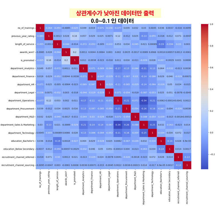 - 상관계수 낮은 데이터만 출력