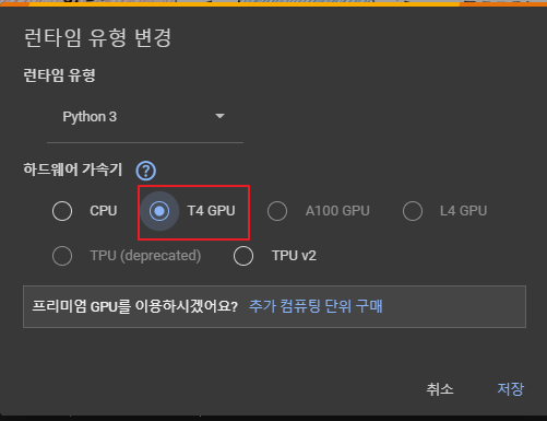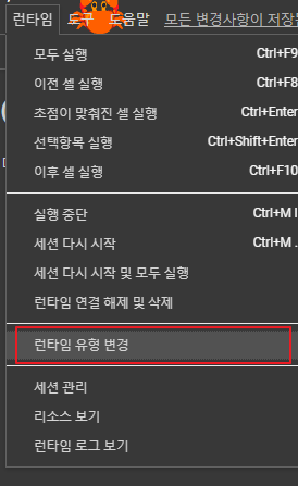 - GPU를 활용할 수 있는지 확인 (런타임 유형 변경 후 런타임 다시 실행)