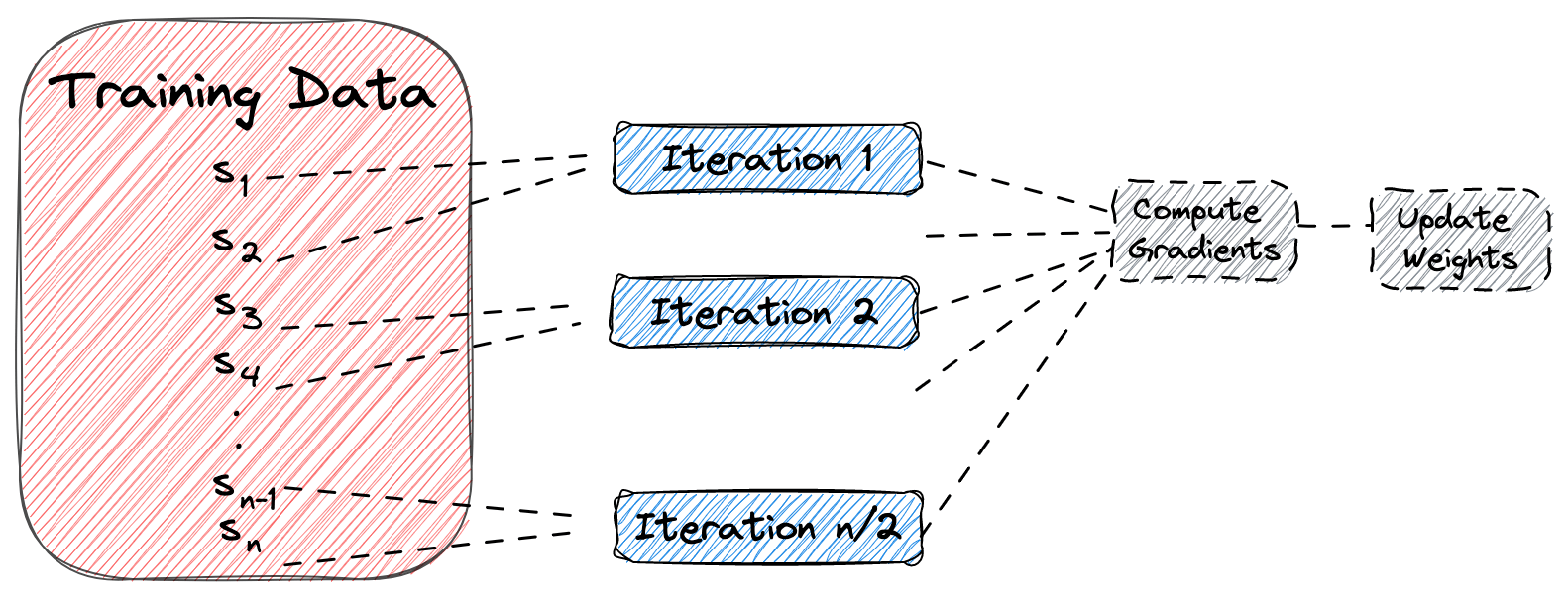 - 배치 처리: 데이터를 지정된 배치 크기로 나누어 모델에 입력으로 제공합니다.