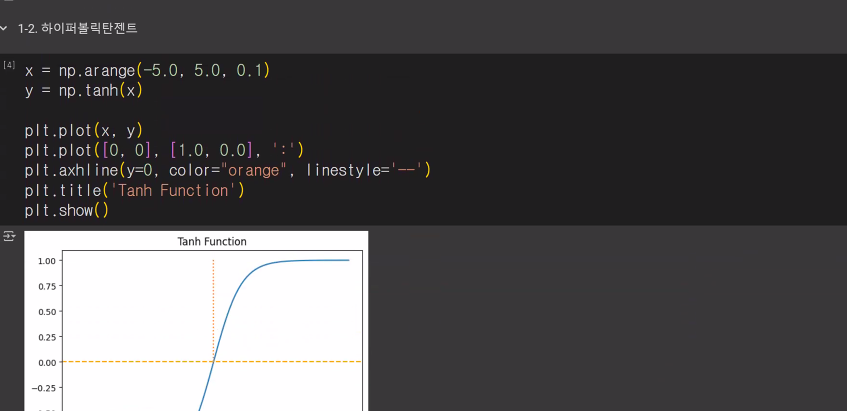 2. 하이퍼볼릭탄젠트( Hyperbolic Tangent)