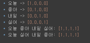 - 토큰화 작업의 결과인 단어 사전을 기계가 이해할 수 있는 언어로 표현하는 과정이고,