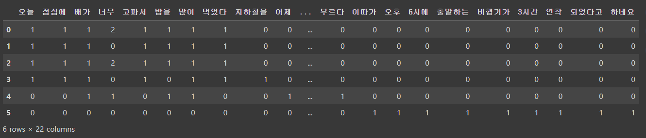 # 컬럼 : key, 인덱스 : 문장idx, 값: 빈도수