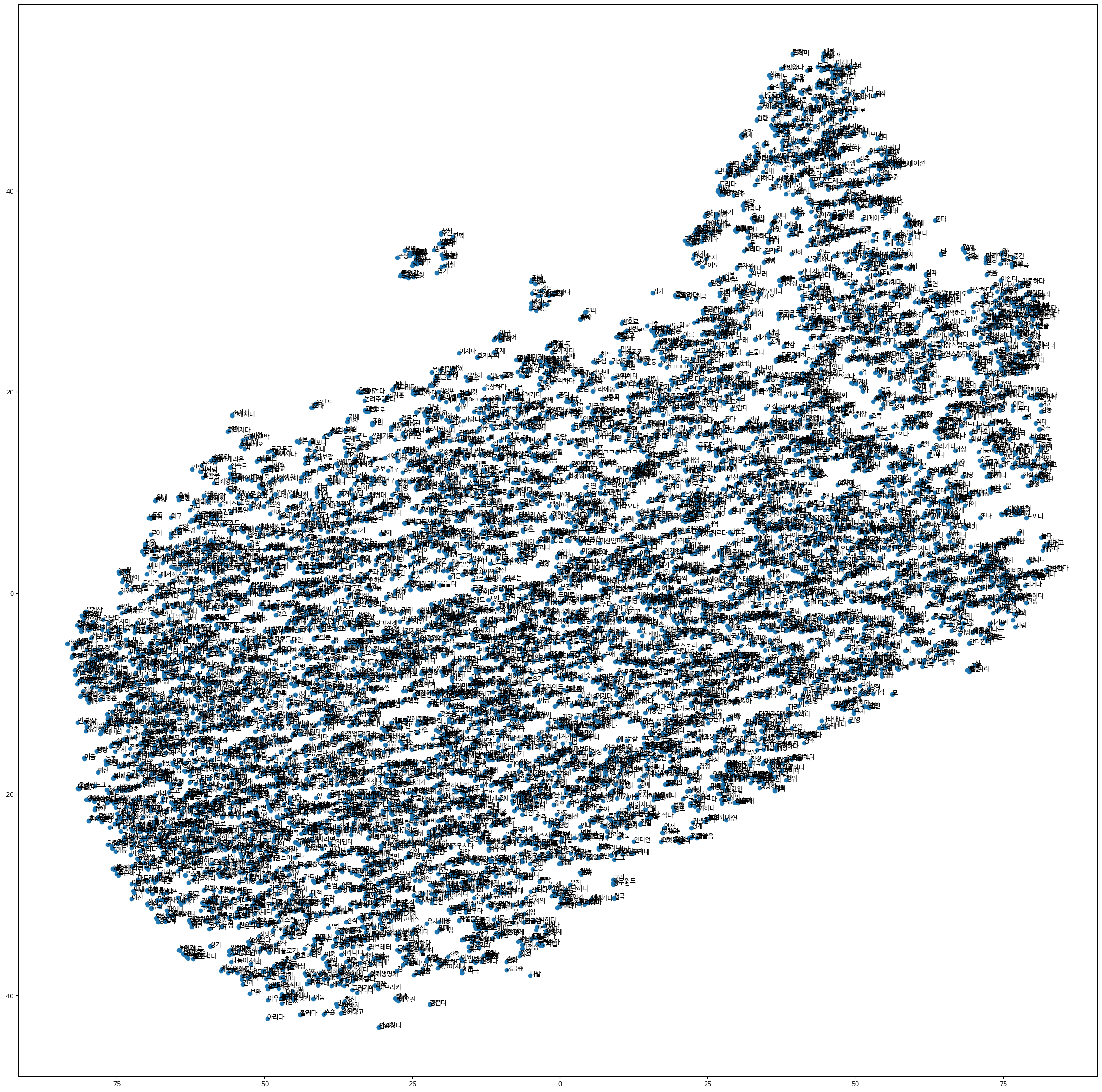 ◼ matplotlib을 사용하여 t-SNE를 통해 차원 축소된 단어 벡터를 시각화